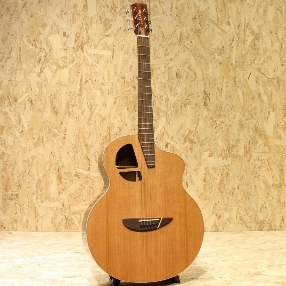 10代の頃から作曲をはじめギターと声楽を専門に学び、実際にシングル曲をリリースするなどプレイヤー目線での知識を豊富に持つ創業主"Adwin Lai(アドウィン・ライ)"氏によって生まれたマレーシア発の新進気鋭ブランド、"L.Luthier"。2009年の創業以来 "常にユーザーに高い品質の製品を届ける事"を大切に製作され、独自の考察から生み出されるデザインや内部の構造をはじめオリジナリティー溢れる機種を揃えるブランドです。本器は同ブランドを代表するLeシリーズ、フルスケールスタンダードボディのP.U搭載モデル”Le RC”。シダートップ、ローズウッドサイド&バック、マホガニーネック、ローズウッド指板&ブリッジ、オリジナルのオープンバッククロームペグ、ベネチアンカッタウェイ、オリジナルXブレーシング、LL 2 in 1 Active Preamp System搭載。同ブランドを代表する”Le”シリーズ。サウンドホールの形状や位置、独自のデザインや丸みを帯びた滑らかなシェイプが特徴です。滑らかな形状には抱え心地の良さを感じられ、演奏時のストレスを低減してくれます。ネック自体も薄めに成形されておりハイポジションまでの運指も容易。ボディとネックとで存分に演奏性を高められた仕様です。大きな特徴としてはサイドサウンドポートの搭載。演奏者が出音を直に聴くために、ボディサイドにサウンドホールを設置。実際にボリューム感、低音の押し出し感、繊細な高音域など細々としたニュアンスまでもが聴こえやすくなっています。サウンドホールが2つある為サラウンド効果もあり、音に包まれるような感覚で演奏が可能。ピッキングのタッチに対しても立ち上がりや反応は非常に早く、もたつきの無いスッキリとした音色を生み出すギター。ローズウッドらしい重厚な低音成分や煌びやかで上品な音色。シダートップ特有の柔らかな音色、反応の良さもあり繊細なタッチでも広がるように、そしてボリューミーに音を響かせてくれます。フィンガーやピックでのストロークまでジャンル問わずに扱えるようなオールマイティなサウンド。ネックの薄さも相まって繊細なタッチや演奏性を要求されるフィンガースタイルでも活躍してくれそうな1本です。何よりも同ブランド独自のP.Uシステムの優秀さ、アンダーサドルピエゾとマイクを搭載したデュアルピックアップシステム。音の芯をアンダーサドルピエゾで拾い上げ、煌びやかな鉄弦らしい空気感をマイクでピックアップ。ピエゾの良いところとマイクの良いところを上手く組み合わせています。コントローラーノブもVol,Tone,Micの3つとシンプル。マイクの混ぜ加減や高音域を調整するトーンで充分に音作りが出来ます。ライブだけに収まらずレコーディングや配信、宅録まで充分なまでに対応できる操作性も良くハイクオリティなシステム。個性的なルックスを持ちながら、実用性に重きを置いた実戦的なギター。優れた演奏性、ハイクオリティなサウンドで日本上陸から人気急上昇中の注目株。メインでもサブでも存分に活躍できる万能機。新しい潮流を感じられるギター、是非ご体感下さいませ。持ち運びに嬉しい便利なオリジナルギグケースも付属しています。
