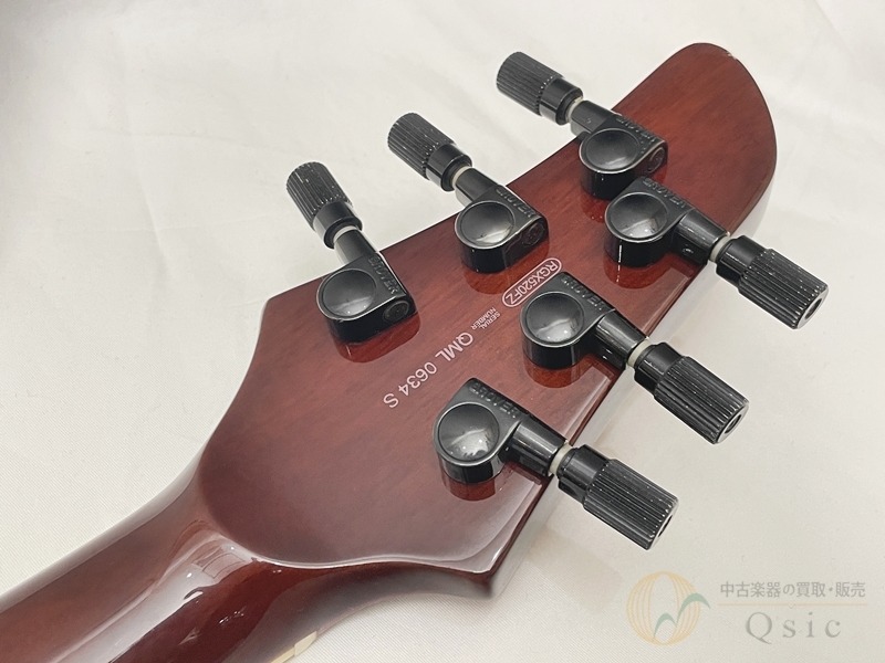 ロングスケール22f仕様のギターですが、ネックジョイントはセットネック構造で、弦は裏通しでT.O.Mタイプのブリッジのギブソン的なテイストも盛り込んでいます。