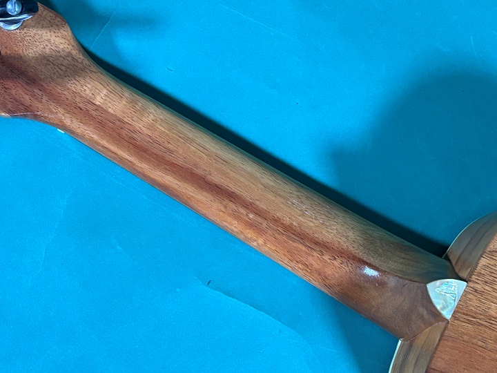 ナット幅:約36mm、スケール:約385mm、ナット・サドルはボーン素材です。ネック厚が薄めの握りやすいラウンドネックです。