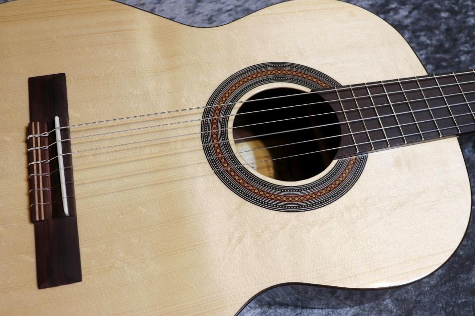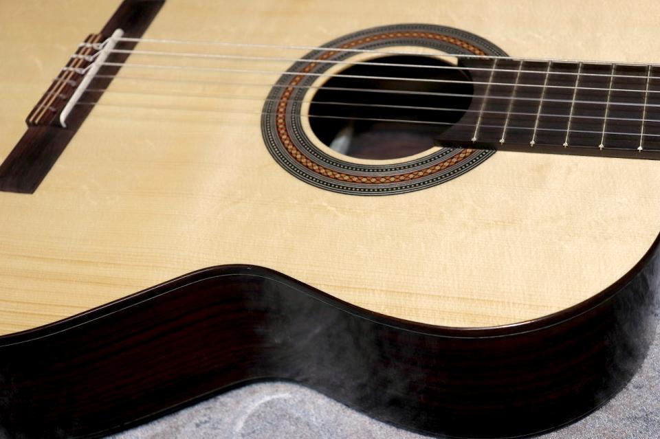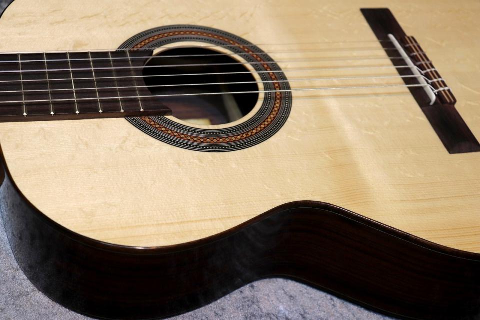 表面板に松、裏横板にローズウッドを用いたクラシックギター王道のスペックといえるモデル。