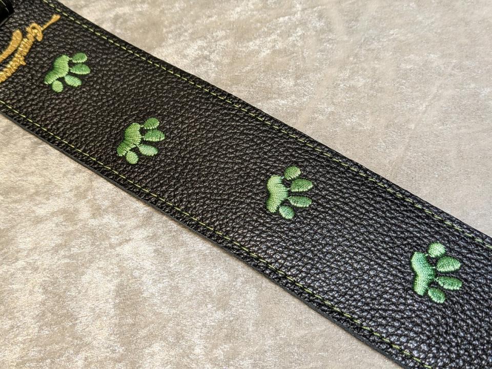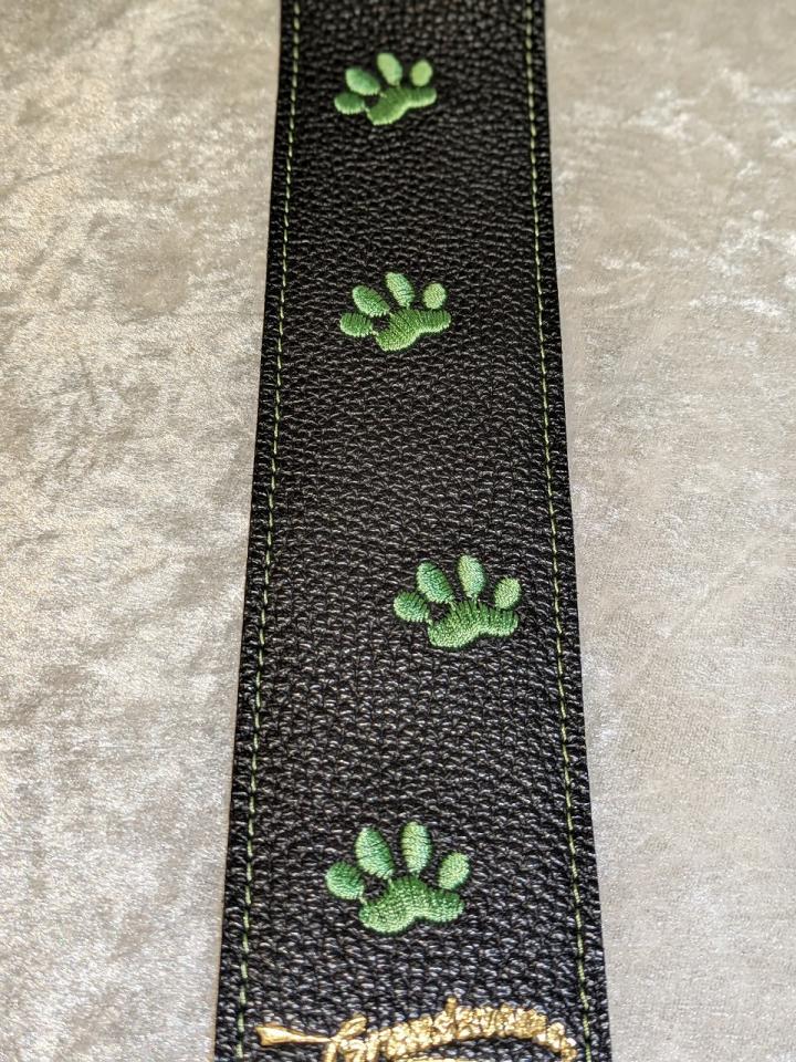 | 商品名 | Grande uomo 【特注】黒ねこ刺繡ストラップ 足跡Verペリドットカラー |