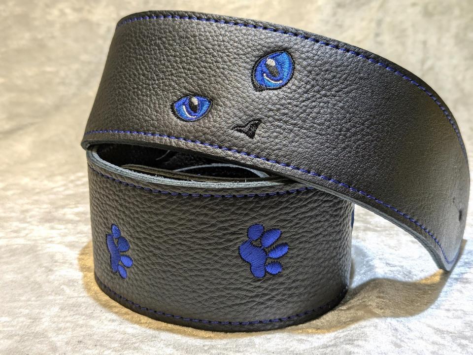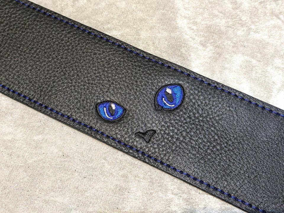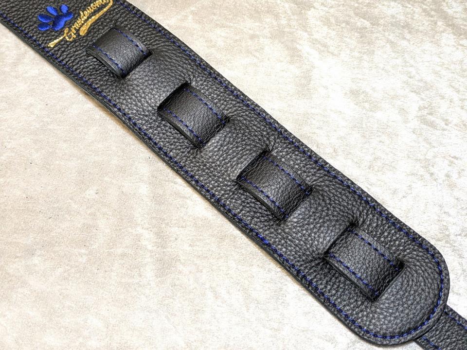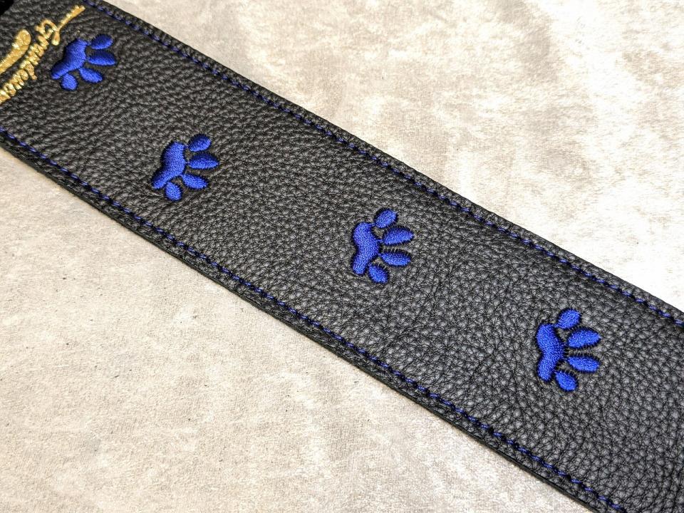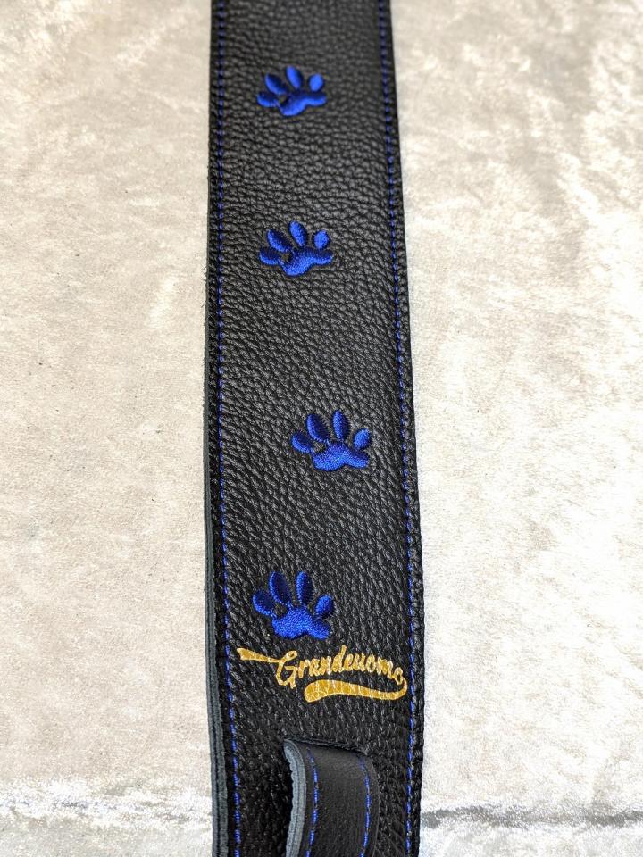 4. Grande uomo 【特注】黒ねこ刺繡ストラップ 足跡Verサファイアカラー New 1385489 Grande uomo【楽器検索|Jギター】