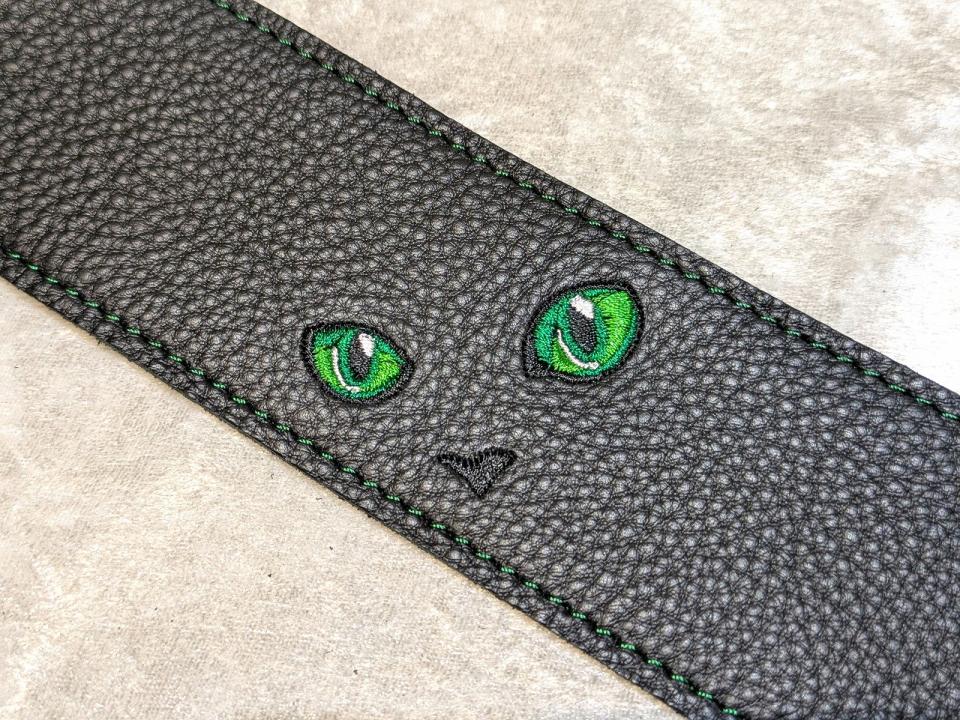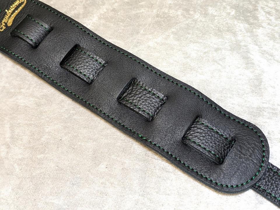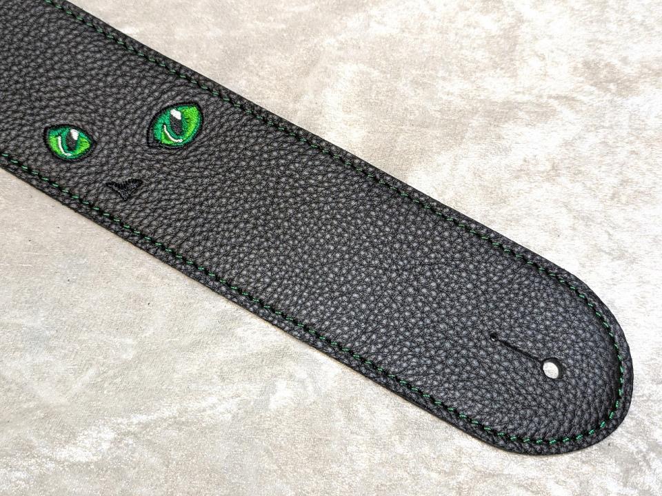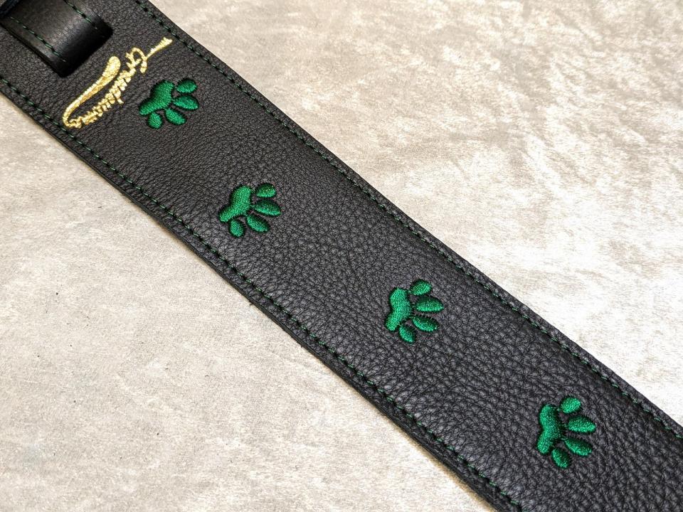 4. Grande uomo 【特注】黒ねこ刺繡ストラップ 足跡Verエメラルドカラー New 1385491 Grande uomo【楽器検索|Jギター】