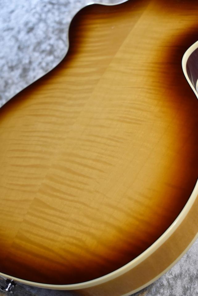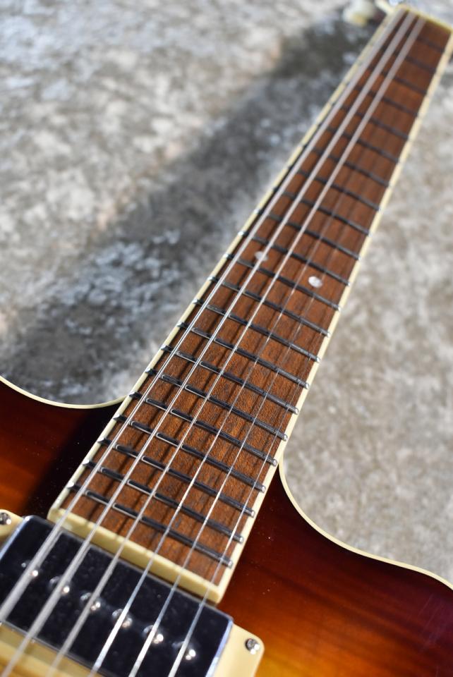 老舗のドイツブランドより美しいフレイムトップとオールドファッションなサンバーストのセミアコ登場
