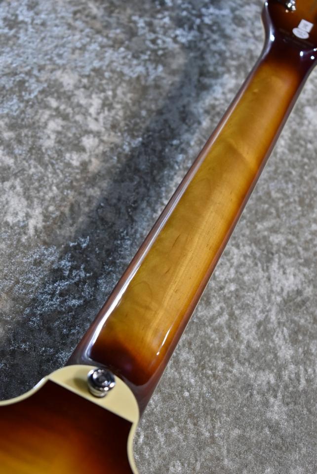 フレームド メイプルのトップに、ノスタルジック感のあるサンバースト フィニッシュで仕上げた、魅力的で美しく、軽量で取り回しの良いセミアコが登場です!