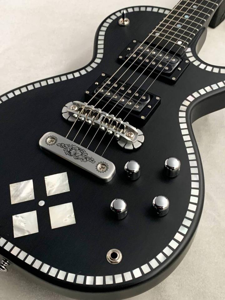 ピックアップはブラックのピックアップ・リングを用い、オープン・タイプのDragon Burstハムバッカーを2基搭載しています。