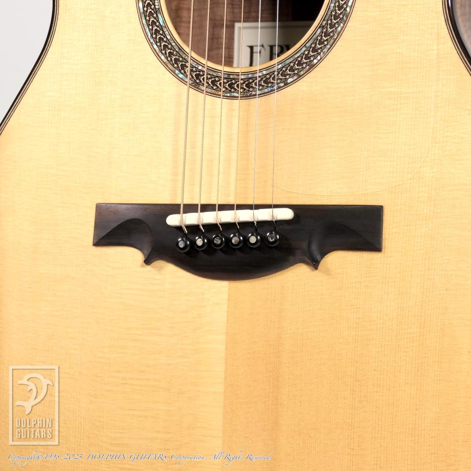 抱えやすいボディはトラディショナルなOMスタイルよりもやや厚みがあり、ソモギ特有のどこまでも深い響きも存分に味わえます。