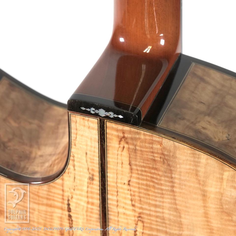 ソモギの作品の中では大変珍しい極上のフィギャードマートルウッドを使用しており、深く且つ透き通る低音域、きらびやかな高音域、全域に渡りプレイヤーの意のままに反応するサウンドは時の流れを忘れてしまうほど魅惑的です。