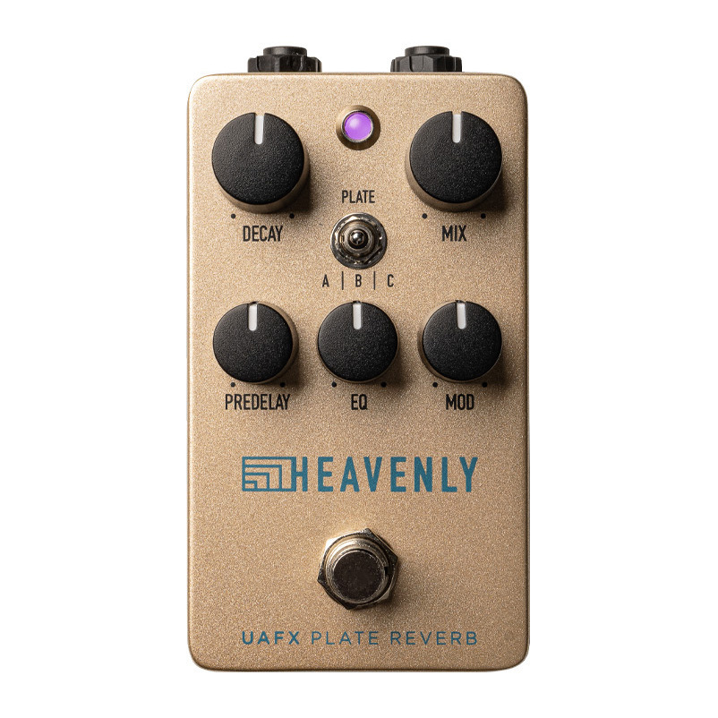 Heavenly は、UA のフラッグシップ Golden Reverberator に搭載されているアルゴリズムをベースに開発されており、他の「プレート・エフェクト」ペダルを凌駕する濃密でムーディーなサウンドと、1950年代のドイツ製スタジオ・プレート・リバーブのリッチで没入感のあるテクスチャーを提供します。