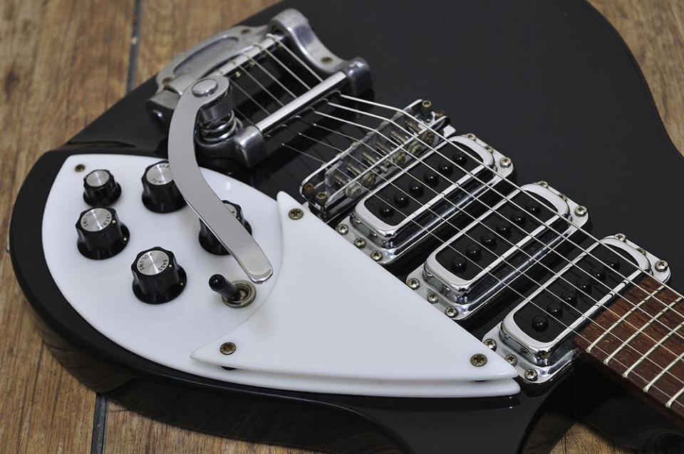 サウンドホールを持たないメイプルのセミホロウボディに、ショートスケールのメイプルネックがセットインされ、指板は塗装が施されたローズウッドのウッドマテリアルを採用。ピックアップは、Rickenbacker ハイゲイン・ピックアップを3基搭載した3ピックアップ・レイアウトで、コントロールは、3Wayのピックアップ・セレクターと2Vol/2Tone/バランサーの仕様です。
