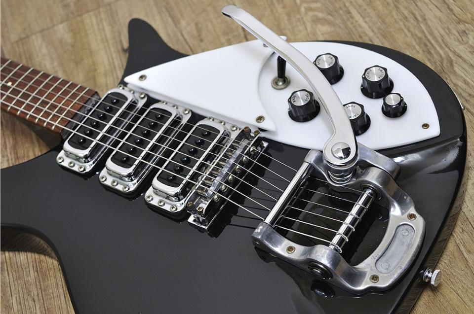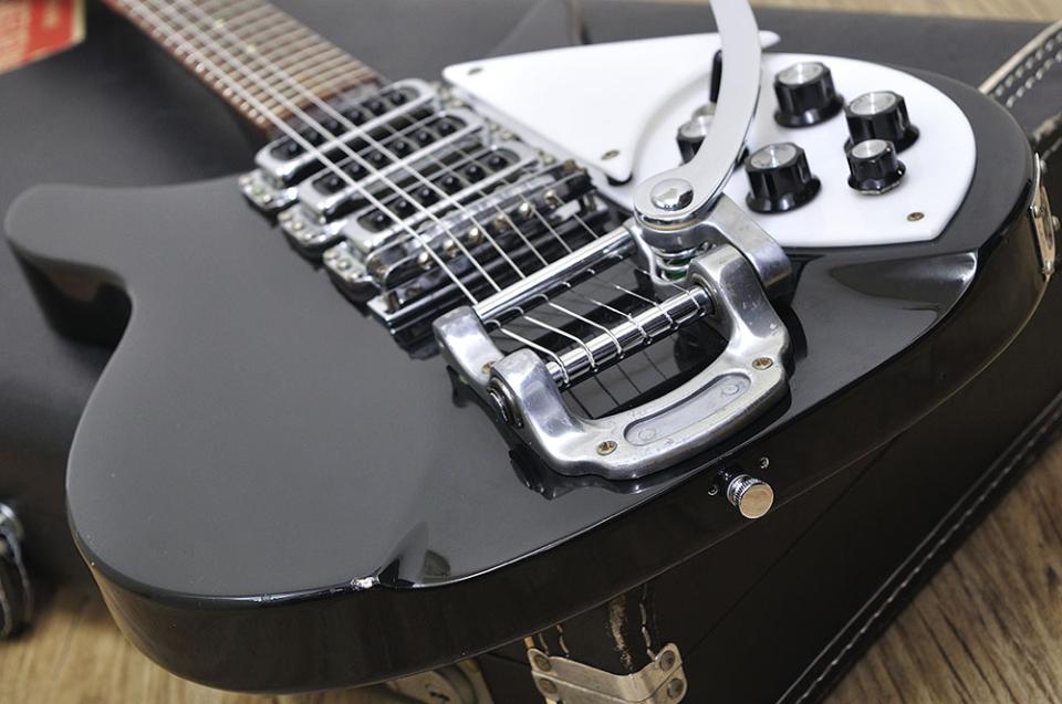 ジョン・レノンの使用で"The Beatles"60's Britsh Beatファンにはお馴染みの、Rickenbacker 325のアーム無し仕様がこの320なのですが、この個体は、Rテールピースが取り外され、ビグスビータイプのアームを取り付けた"325"仕様となっております。