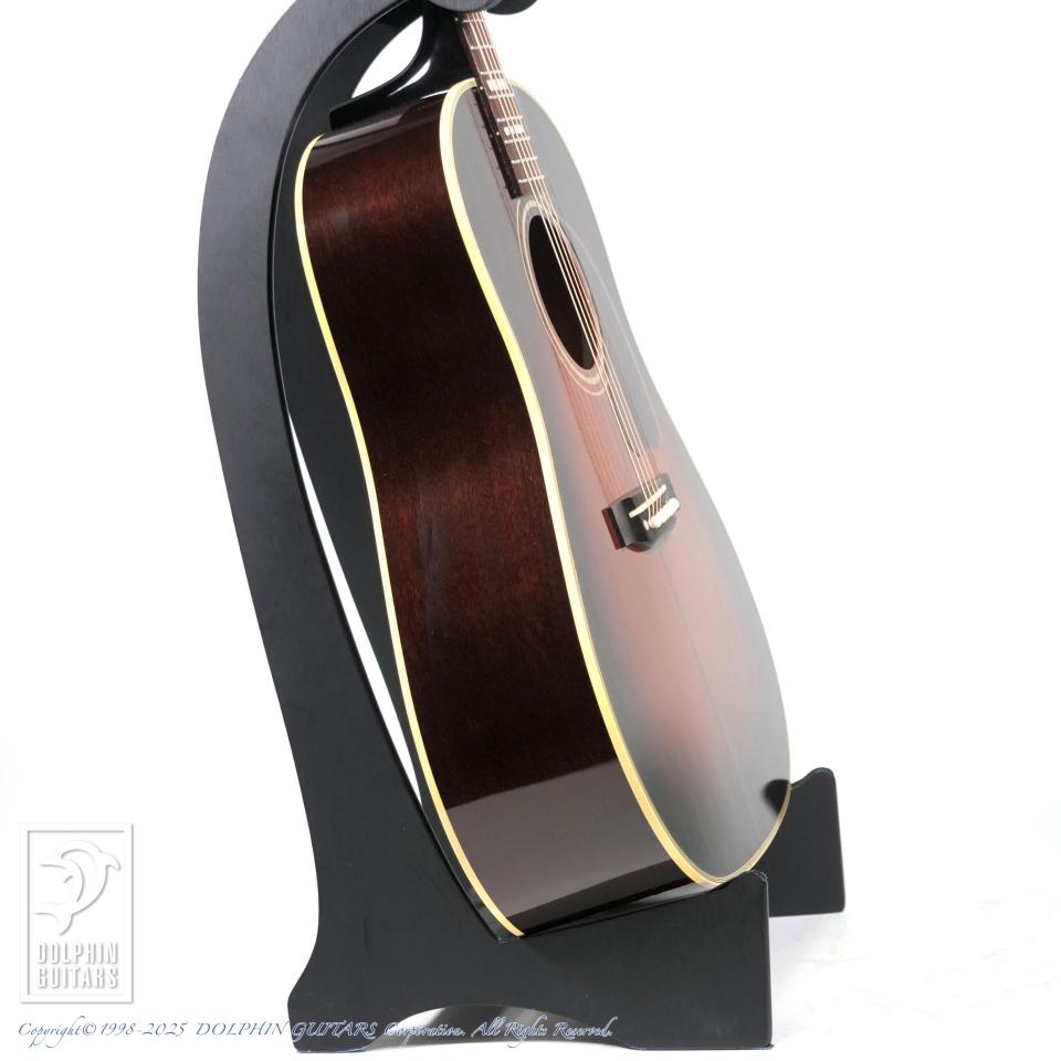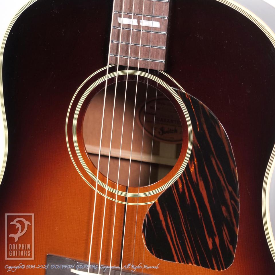 バナーロゴ、スモールPG、ネックバインディングなし、ボトムベリーブリッジ、ロングサドル、そしてトップセンターの”スカンクストライプ”、さらにはサンバーストの色合いも深い飴色のカラーにとことん拘り、戦中期のSJを再現したモデルとなっております。塗装もとことん拘り薄く仕上げており、ヴィンテージのような質感を再現いたしました。
