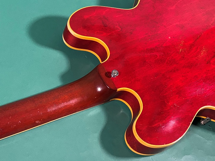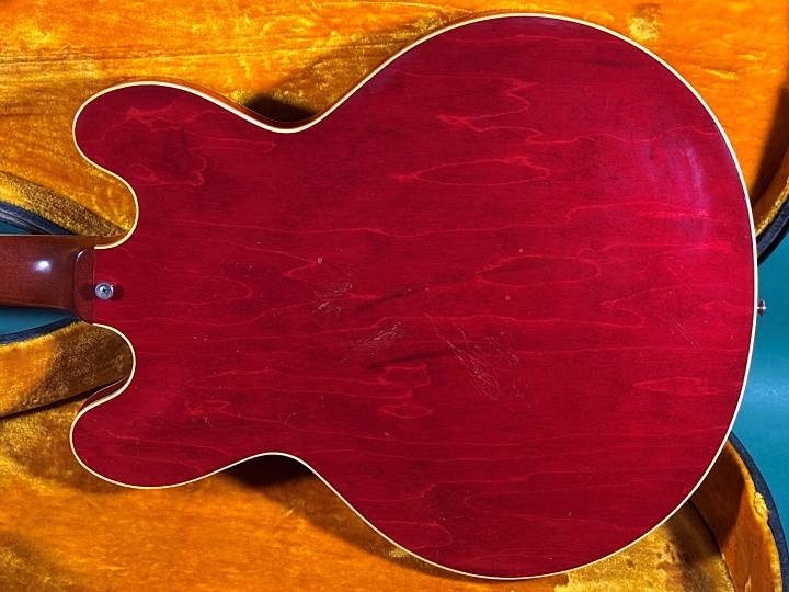 シャキっと反応よく音が立ち上がり、長い年月を経たセミアコらしい枯れたエアー感で音抜けよく、PAFらしい太く艶やかで暖かみのあるサウンドです。基本的にどんなジャンルの音楽でも使用できる楽器ですが、この枯れた空気感はブルース、ジャズ、クラシックロックに特におすすめです。市場でもなかなか出物が少なく、価格も年々高騰し続けているモデルです。お探しだった方は、このチャンスをお見逃しなく!