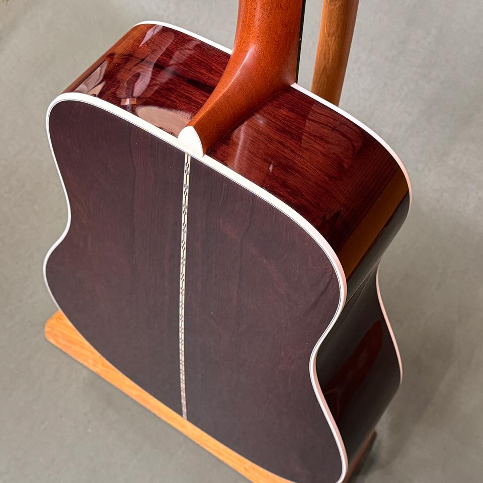 サイド&バックのホンジュラスローズウッドは深い低音と豊かな倍音が特徴で、ドレッドノートらしい迫力と透明感のあるサウンドを両立します。