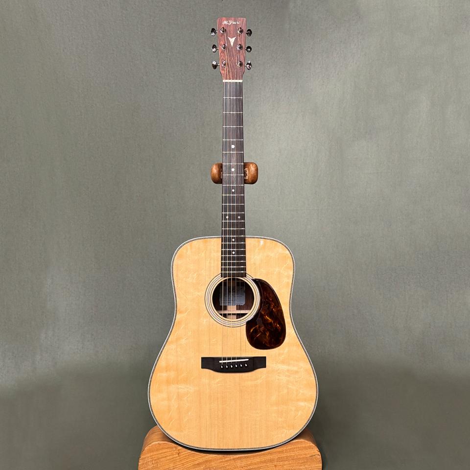 トップには立体的な杢が美しいベアクロウ・シトカスプルース単板、サイド&バックには近年入手困難なホンジュラスローズウッド単板を採用。