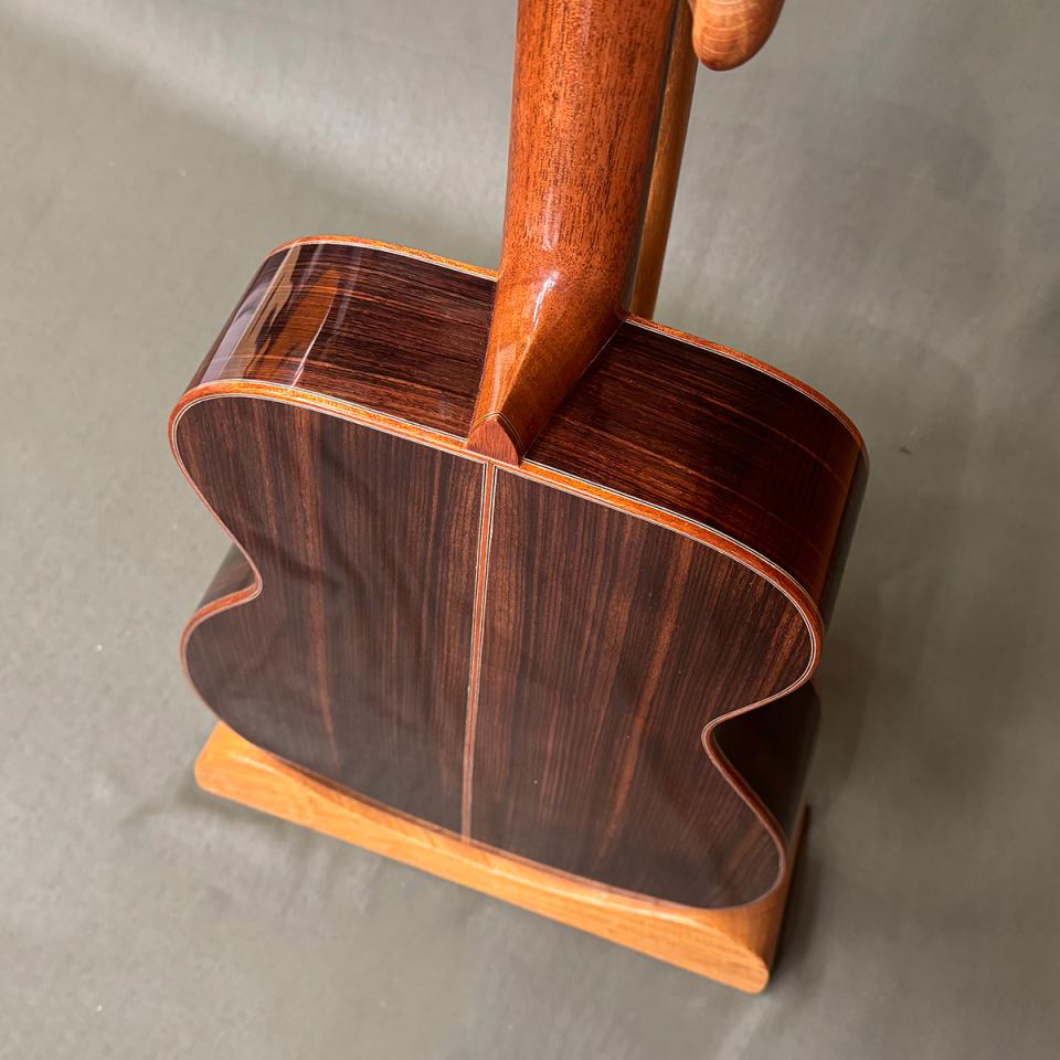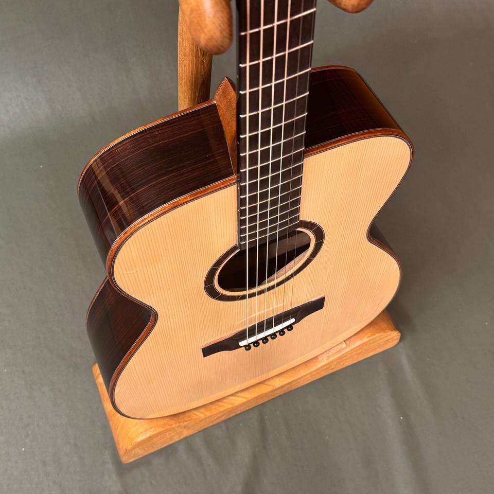 その中でも未来のマスタークラフトマンと謳われる、道前氏によって製作されたインドローズ単板をサイドバックに用いたOMが入荷しました。