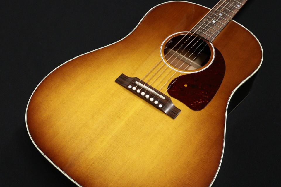 本機はJ-45 Standardの基本的なスペックはそのままに、フルグロスのハニーバーストカラーを採用。