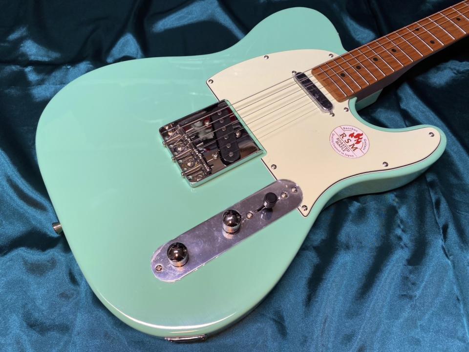 ローステッドメイプルを採用したRSMシリーズで、伝統的なTEモデルのようにフロント・リア共にシングルピックアップを搭載したモデル『BTE-1-RSM/M』のサーフグリーンになります。