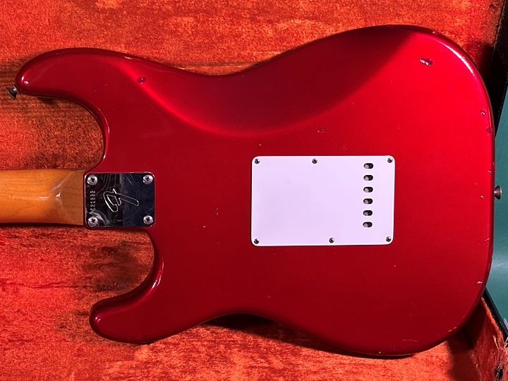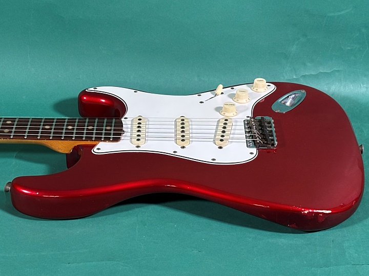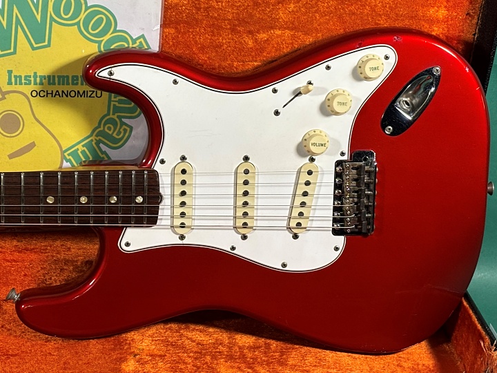 1965年CBSによる買収が行われた直後の、Pre-CBSの特徴が色濃く残る過渡期に生産されたモデルで、ラージ・ヘッド・ストックにトランジションロゴ、そしてカスタムカラーのCandy Apple Redです。
