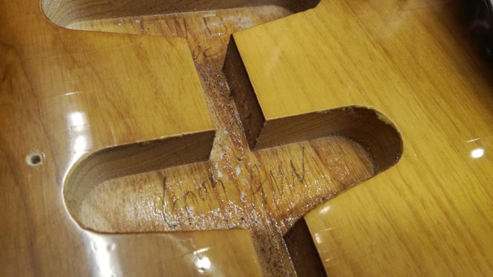 極上のフレイムメイプルネックですが、強度が高く、製作から8年経過した今でもトラスロッドはほとんど締められておりません。またフレットの減りもほとんどなく、良いコンディションをキープしております。