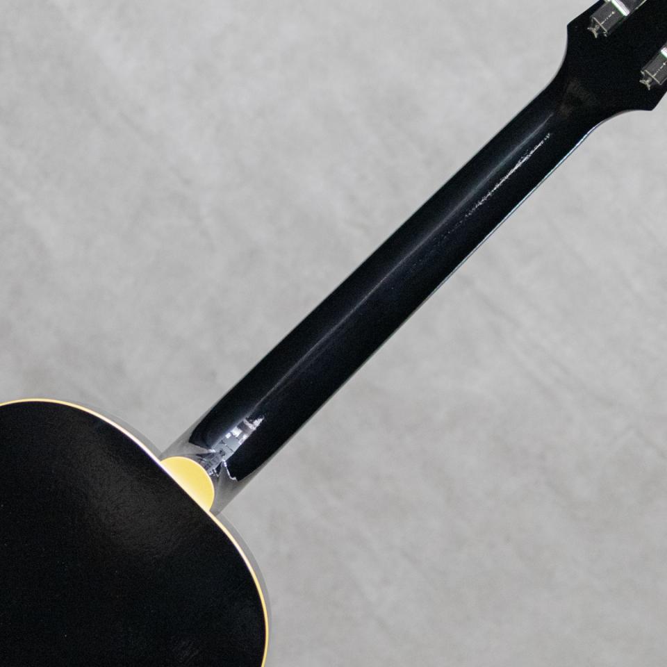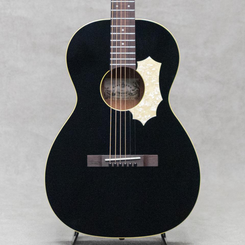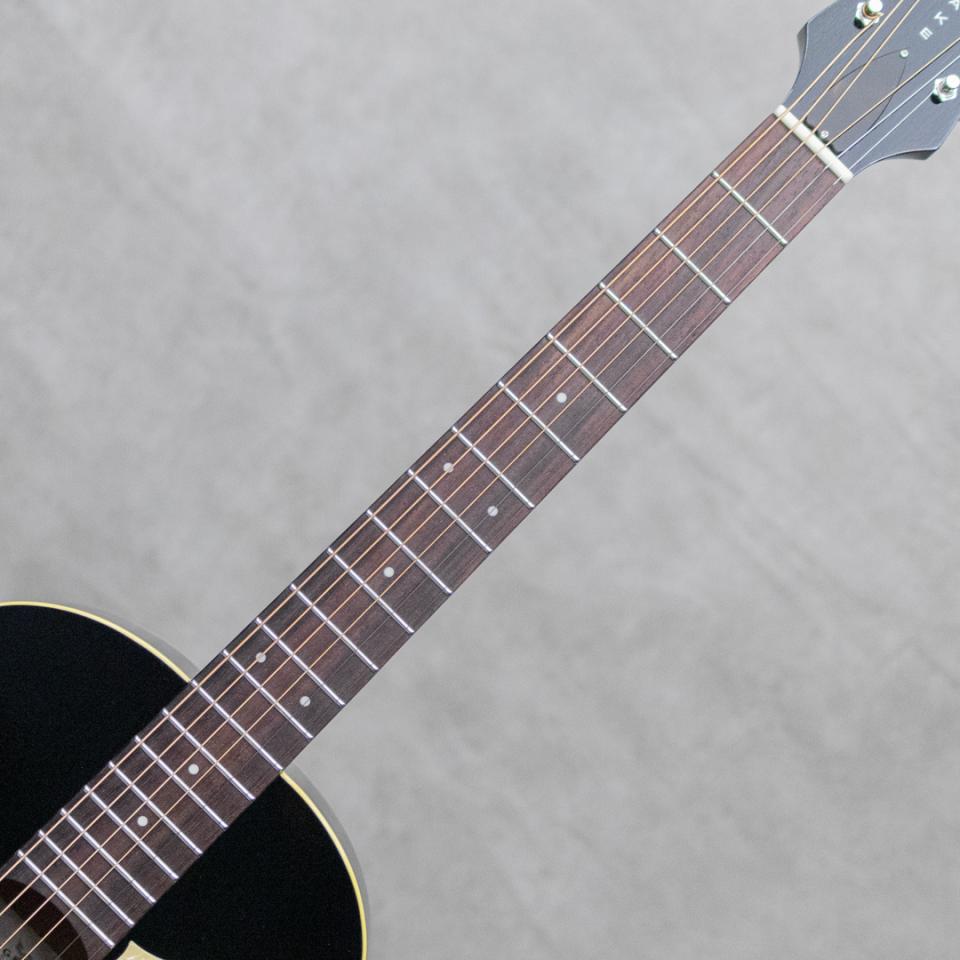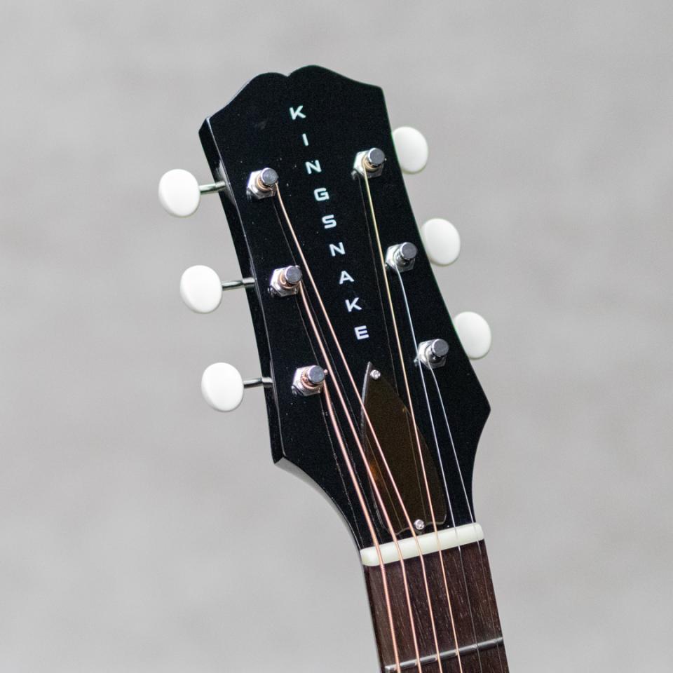 抜群のコストパフォーマンスを誇り、随所にこだわったハイクオリティな製品を生み出す"KING SNAKE”。国産での確かな製造を持ち、明確なコンセプトに基づき設計される各モデルは、実用的かつ実践向きなギターを産み出しています。本器は、小ぶりなシングルOボディサイズのボディを持つ”Yucca Black”。ブルースプレイで求められる要素をしっかりと詰め込み設計されたブルースに特化したフラットトップモデル。スプルース単板トップ、マホガニーサイド&バック、マホガニーネック、ローズウッド指板&レクタングルブリッジ、パーロイドピックガード、Gotoh製3連ペグ、ナット幅42.7mm、ラダーブレイシングトップ、エボニーブラックフィニッシュ。タイトで骨太なレスポンス。しっかりと音抜けがしながらモタつかないフィール。しかしながら、弦を弾いたときに出る倍音をまとったしっかりとコシのあるトーンは、コンセプト通りの期待を裏切らないサウンド。小気味よく軽快に、ノスタルジックに泥臭く、まさに”Just for Blues”。また本器の特徴的な設計として13Fジョイントを採用。箱鳴りの豊かさとプレイ幅の広さを考慮した両有のデザインになっています。モデル名の”Yucca”は乾燥地帯に自生する植物の名ですが、”Yucca"の葉は硬く、形状は剣状で先が針のように硬く尖り、銃剣/bayonet、短剣/dagger、剣/Sword、針/needle等とも呼ばれるこの植物と、このギターの持つトーンが似ていることで命名されました。明確なコンセプトを確かな国産技術で具現化された”Yucca”。小脇に抱え小気味よく、ブルースを奏でてください。オリジナルハードケース付属