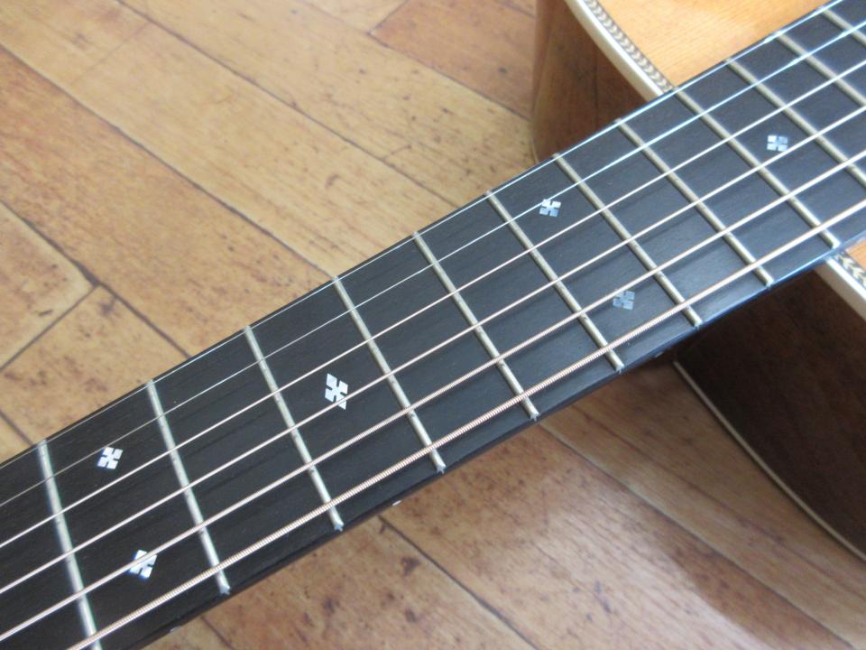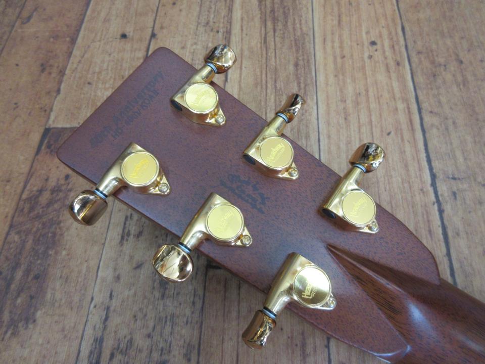 2017年、ブランドスタート40周年を迎え、Asuka Team Buildシリ-ズよりサイドバックにコア材を使用した製作本数5本のみの限定モデル「HD40th/KOAⅡ」です。コア材はウクレレに仕様する木材としてポピュラーで、その性質は硬く、使用した当機は較的明るく、キリっとしたハリのあるサウンドになっています。ブレイシングには「アドバンスドリアシフト」というノーマルの位置から若干ブリッジ側に寄せたシフトで、ノーマルシフトでは少し弱かったプレーン弦(1,2弦)の鳴りが向上。また、位置をブリッジ側に寄せたことでトップ材に対する丈夫さが増し、ギター自体の安定にも寄与するとのことです。さらに、スキャロップド仕様のため、1音1音しっかりと鳴り響き、芯のあるきれいな迫力のサウンドを実現しています。現在、市場にはない超希少な1本です。SIDEに1mmほどのあまり目立たない打痕のため、当価格にて販売中です。
