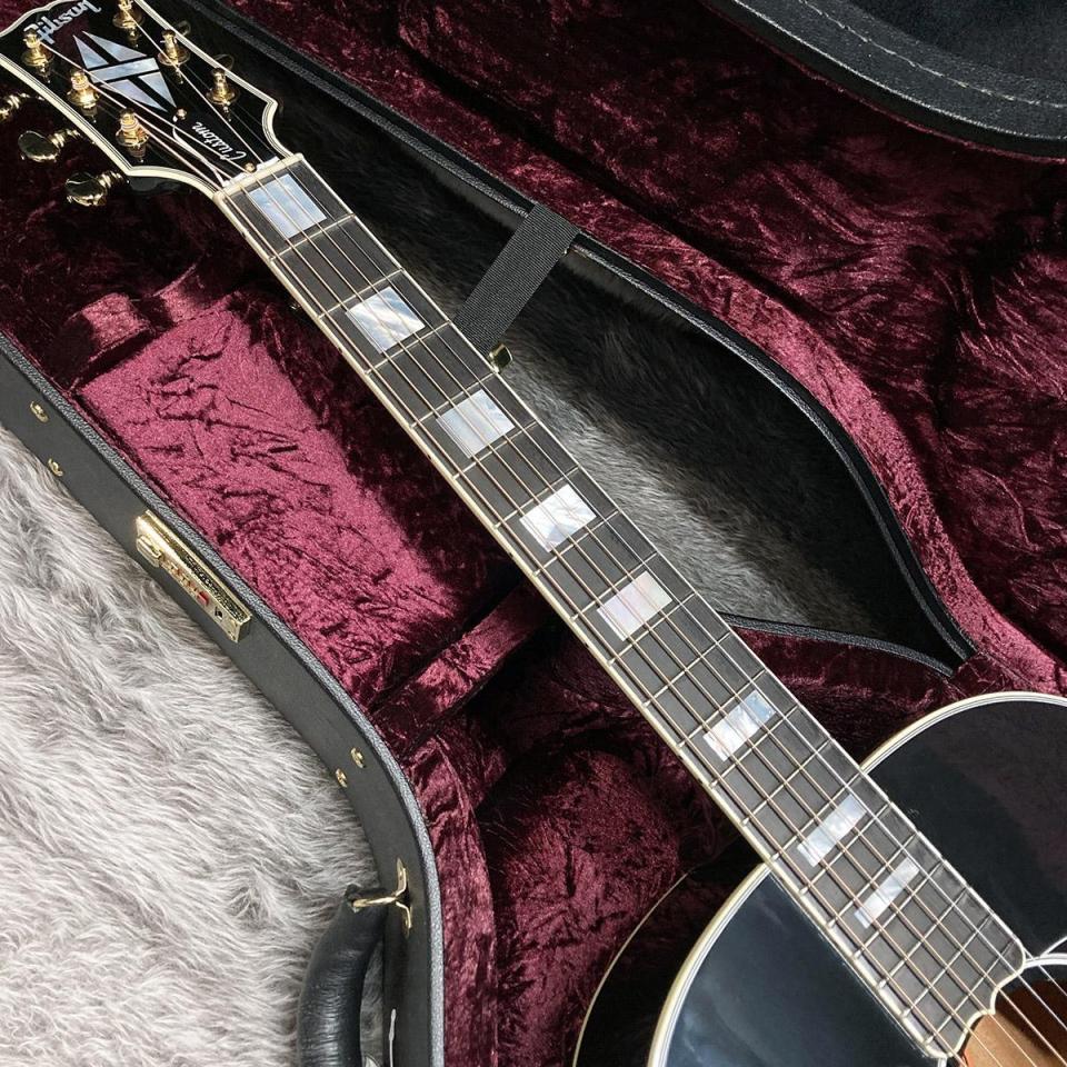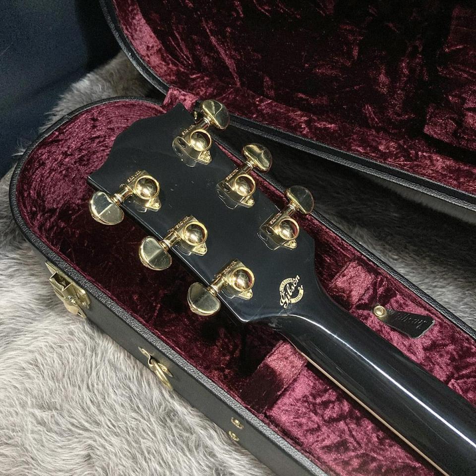 この度、ギブソン・カスタムショップは、新しいJ-45 Customのリリースを発表します。シトカスプルース・トップ、マホガニー・バック&サイド、24.75インチ・スケールのマホガニー・スリムテーパー・ネック等、プレーヤーが求めるJ-45の特徴が押さえられつつ、レスポール・カスタムにインスパイアされた意匠が施されています。エボニーカラーのニトロセルロースラッカー・フィニッシュ、トップとバックの多層バインディング、レスポール・スタイルのバインディングが施されたヘッドストック、マザー・オブ・パールのカスタム・スプリット・ダイヤモンド・インレイ、バインディングの施されたエボニー指板、マザー・オブ・パールのカスタム・ブロック・インレイ、ゴールドのGrover Rotomaticチューナー等、充実した仕様を誇ります。L.R. Baggs Session VTCを搭載。