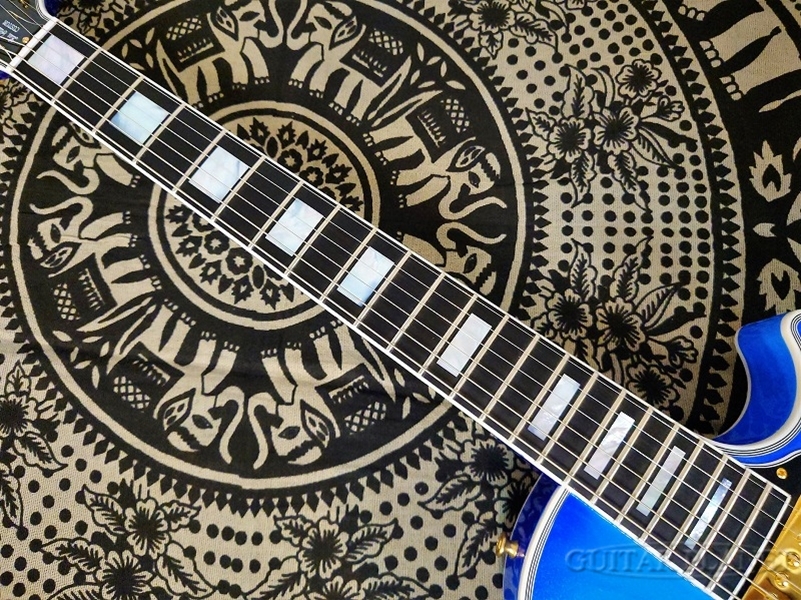 ラメを混ぜたブルーをバーストさせた鮮やかな仕上がりとなっており、非常にステージ映えする逸品となっています。