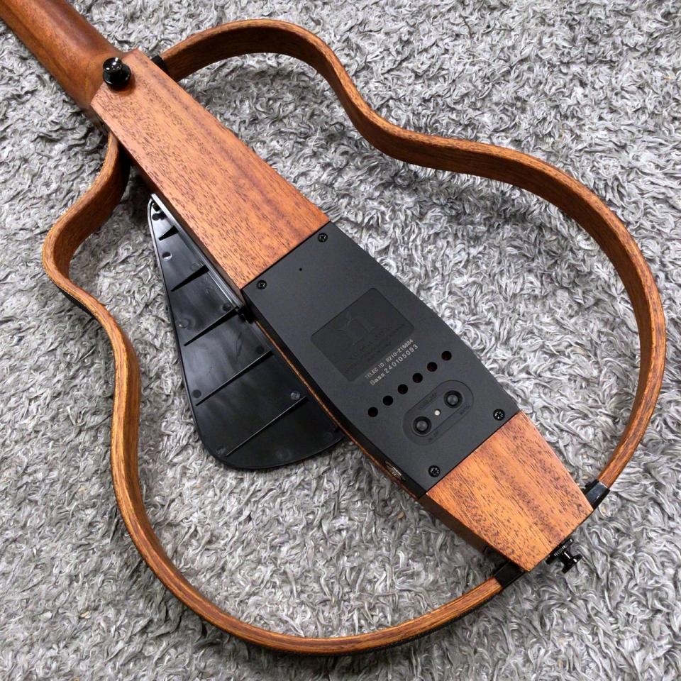NBSGベースモデル。フレームを外せばコンパクトに持ち運び可能。アンプに繋げば、リアルなアコースティックサウンド、加えてリバーブやディレイなどエフェクターを内蔵。しかもワイヤレスで、アンプと接続可能。Bluetoothでスマホとも連携し、さらに奥深い機能もスマホからコントロールできる。