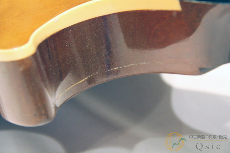 フロントピックアップ近くに大きな塗装剥離があるほか全体的に打痕がございます。