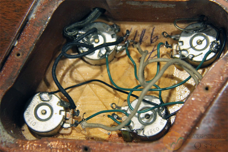 電装系はパッシブに交換されており、コントロールは2ボリューム2トーンでレスポールギターのような仕様になっております。