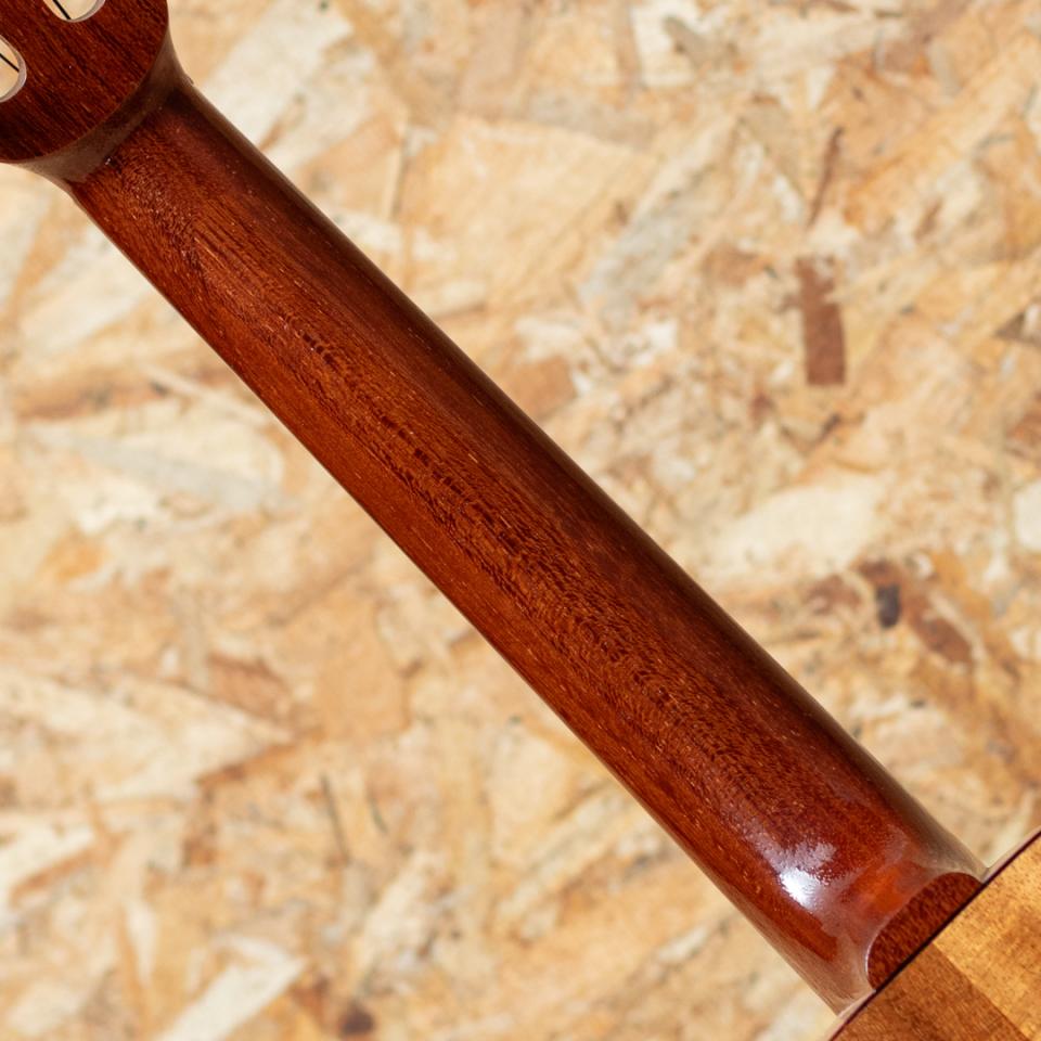 ボディトップ一部塗装修正ありのため1本限りの特価品!通常販売価格\275,000→京都市の工房にて占部英明氏、息子の直宏氏によって製作されるハンドメイドウクレレ。本器はウクレレプレイヤー”名渡山遼”氏が愛用していることで有名なサイズ”ビッグ・テナー”シェイプの1本。ハワイアンコアボディ、ホンジュラスマホガニーネック、ローズウッド指板&ブリッジ、アバロンロゼッタ、グローバー製ギヤペグ、スロテッドヘッド仕様。占部ウクレレ特有のやや薄めで握り易いネックシェイプ、0フレット仕様でローポジションの弾き易さは格別。14フレットジョイント仕様で演奏性も抜群です。一般的なテナーモデルより僅かに大きく、スケールも長いため、大音量かつ安定性に優れ、ソロウクレレに最適な仕様の1本。手が小さな方には少し難易度が高くなってしまいますが、楽器としての精度は非常に高いため、弾きこなせれば最高の相棒となるでしょう。