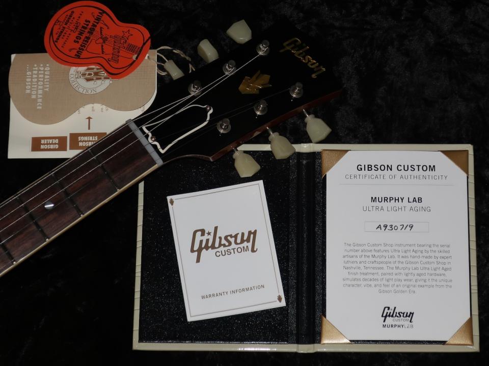 超リアルなVintage NaturalカラーにUltra Light Agedが素晴らしい、ネック・グリップは60th Anniversary 1959 Les Paulのややスリムなグリップにミディアム・ジャンボ・フレット、PUは"Custom Bucker “ アンポッテド、キャビティ内のコントロール・ホットはヴィンテージのカーブを追及した500KΩポットに変更、バンブルビー・コンデンサーもよりヴィンテージに近づけたものを新たに採用、チューブレス・トラスロッドとネックと指板とボディフィットはハイドグルー(ニカワ)で接着されております。超リアルなヴィンテージ・サウンドを再現しております。3,550g