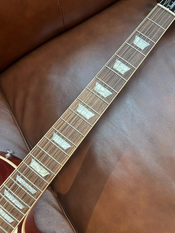 58年仕様のレスポール・スタンダードを彷彿とさせるルックスが刺さる人には刺さる魅力的な一本です。