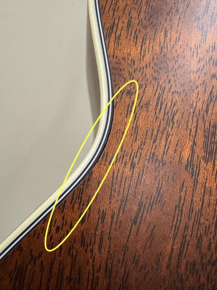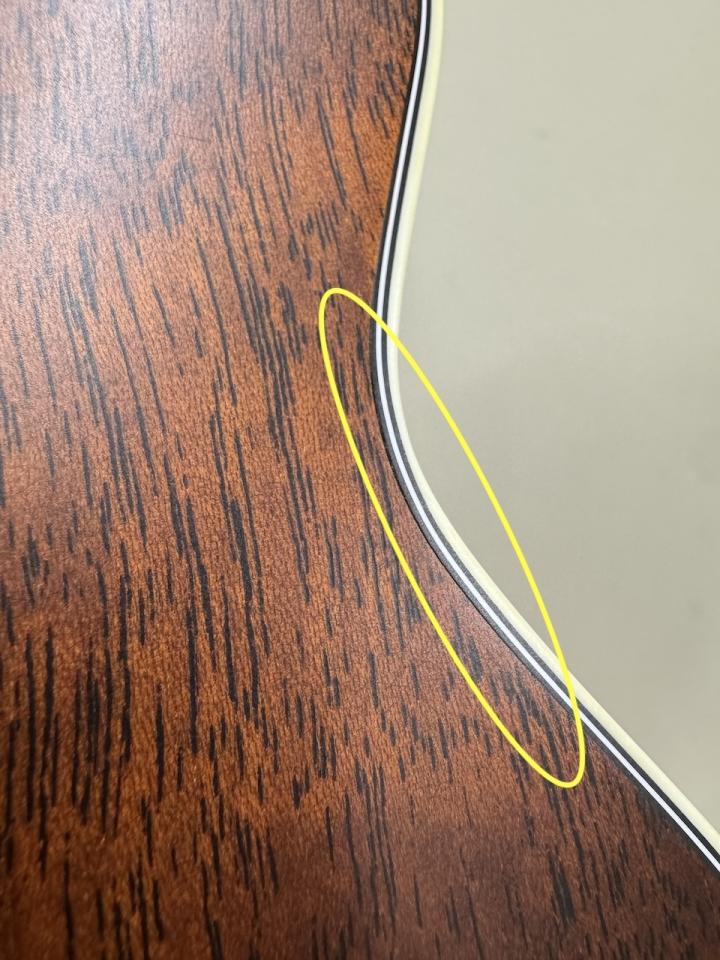 ボディトップ側、バインディング剥がれの補修痕がございます。