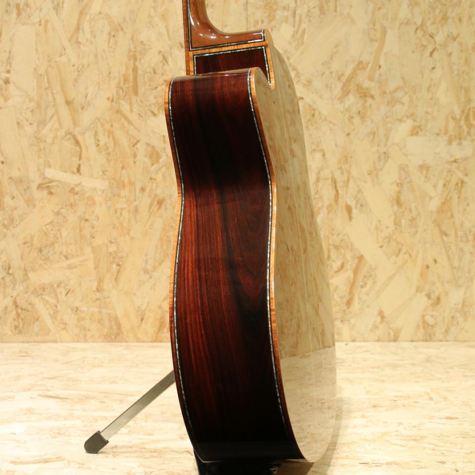 同ブランドにて最大とされるオリジナルジャンボボディをベースに製作されたカスタムオーダー品。S&Bはハカランダを採用、アバロンでまとめられた装飾も美しい拘りオーダーの1本。