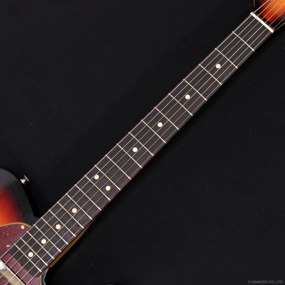 ネックシェイプは薄すぎない'63スタイルの"C"シェイプ。べっ甲柄ピックガードとのマッチングもかっこいい1本。重量は約3.37kgと軽量です。