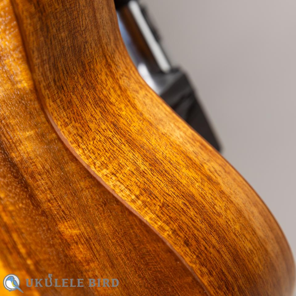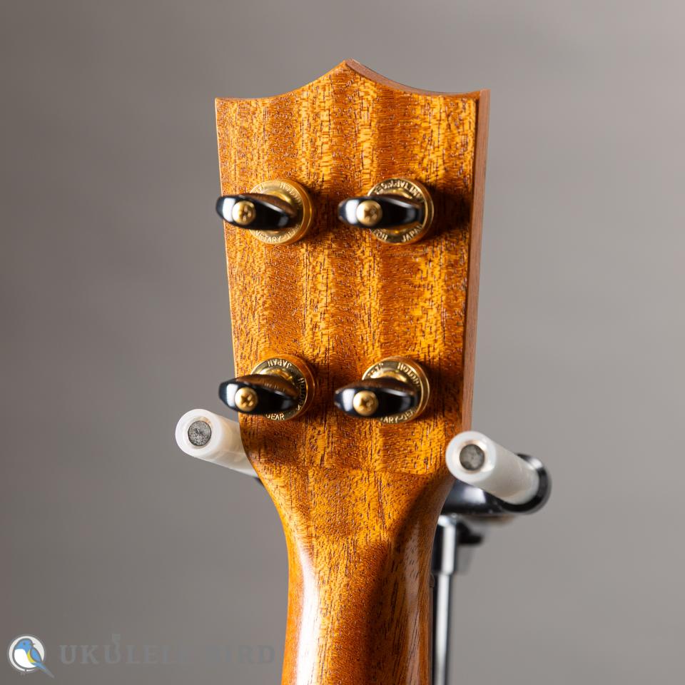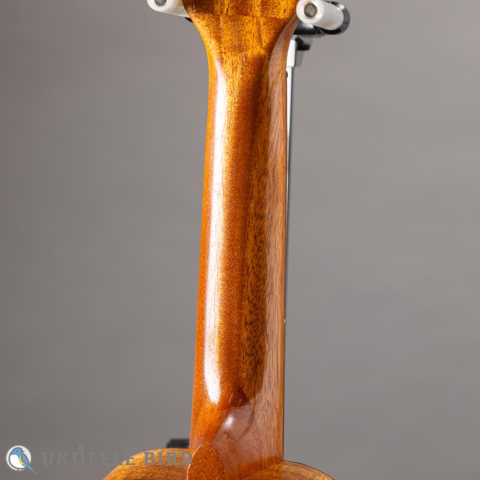 ほんのりツヤ感はありますが、サテン仕上げに近い塗装で、肌触りも優しいシンプルながら温もりを感じるウクレレです。