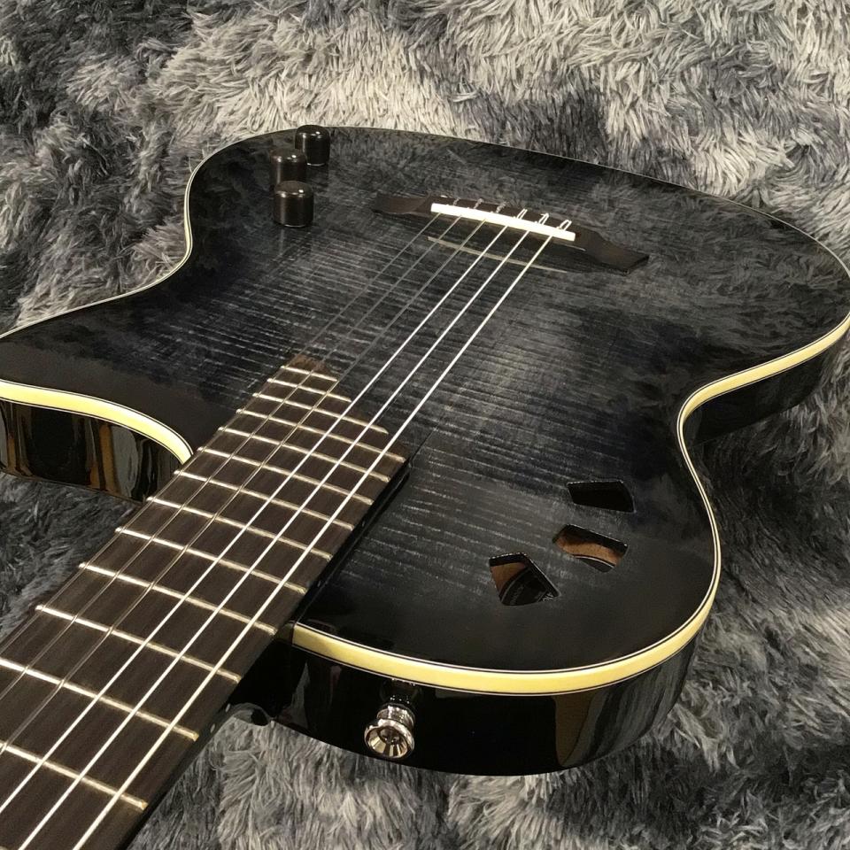 ステージに、レコーディングに大活躍間違いなしの薄型チェンバーボディのエレガット!薄型ですが豊かな生鳴りと、アンダーサドルのピエゾとブリッジ下に仕込まれたマイクをブレンド出力可能です。