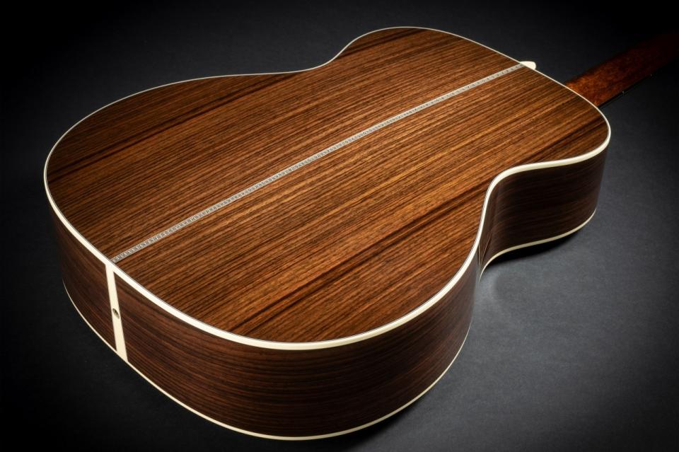 ボディシェイプは000サイズを採用し、トップからサイド&バックまでサペリを採用。
