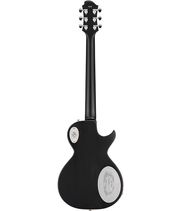 ウェストのくびれが大きいシングル・カッタウェイのボディー・スタイルで、ボディーとネックに厳選されたアフリカン・マホガニー、フィンガーボードはエボニーを使用、635mmのスケールで、セット・ネック・ジョイント、ミディアム・サイズの24フレット仕様です。
