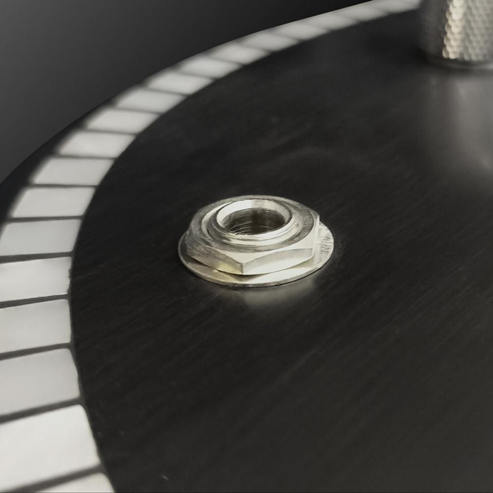 同様にアルミ合金を用いたヘッドのダイアモンド・エンブレム、トラスロッド・カバー、テイルピースやコントロール&スイッチ・バック・プレートに至るまで彫金を施しています。
