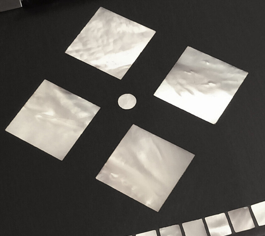 本物のシェルによる微妙な輝きや色味の違いが美しく、マットなブラック・ボディに映えるデザインになっています。