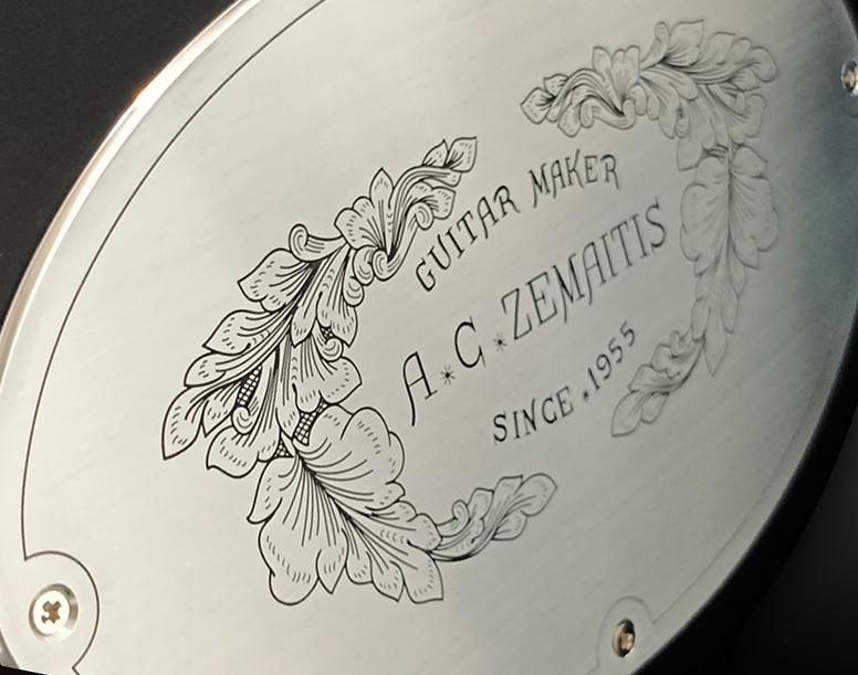 ボディ・バックのコントロール・バック・プレートには伝統を示す「A. C. ZEMAITIS SINCE 1955」の文字が刻まれたデザインなどクラシックなルックスが特徴です。