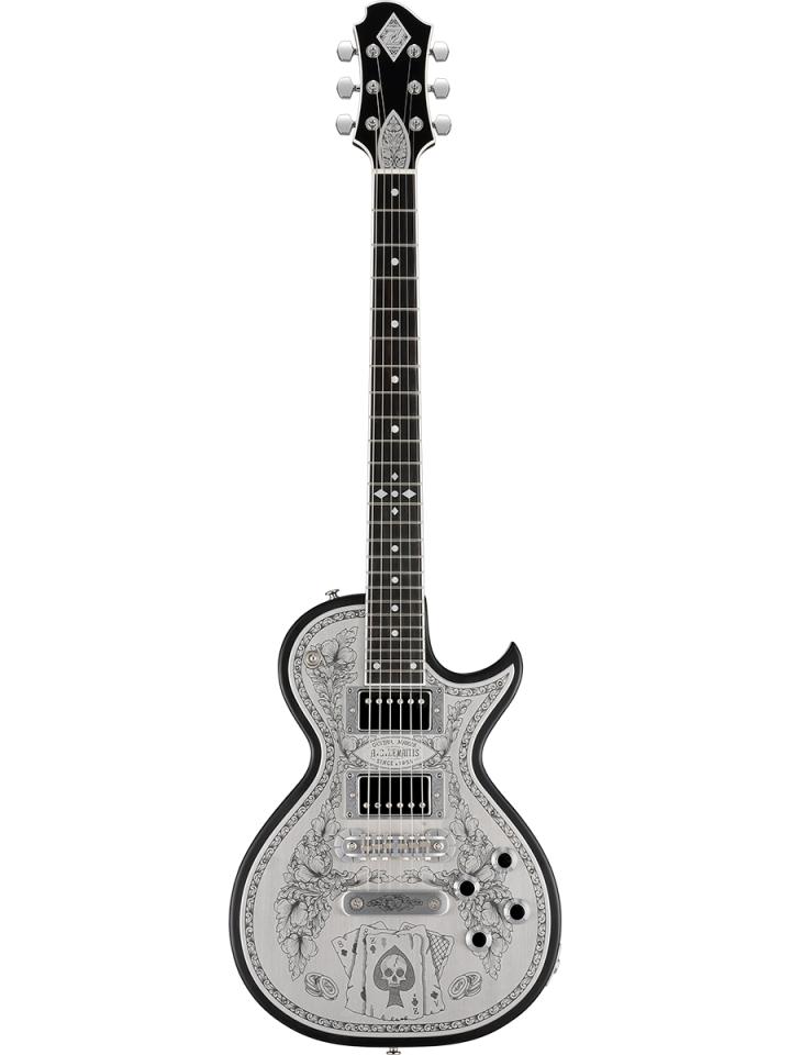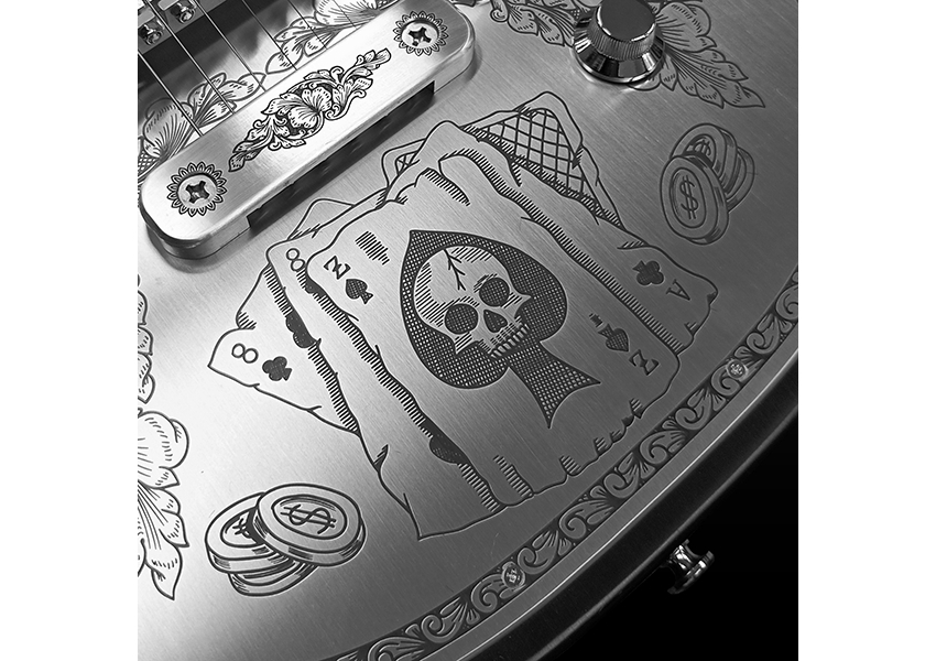 メタル・ピックガードにトランプとコインにドクロが超キュートな「Aces & Eights」!!