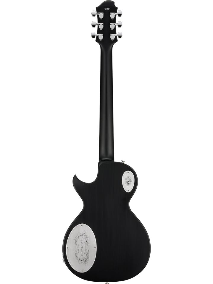 ウェストのくびれが大きいシングル・カッタウェイのボディー・スタイルで、ボディーとネックに厳選されたアフリカン・マホガニー、フィンガーボードはエボニーを使用、635mmのスケールで、セット・ネック・ジョイント、ミディアム・サイズの24フレット仕様で、ブリッジ後方に「Dragon & Heart」のデザインを採り入れたモデルです。