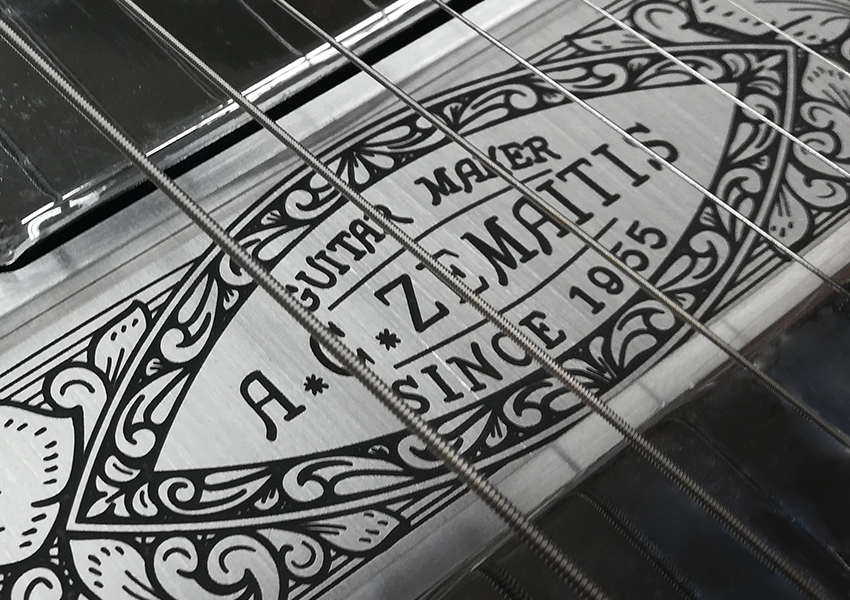 ボディー・トップのアルミ合金のプレートにゼマイティスらしいリーフ柄の彫金装飾を全面に加え、伝統を示す「A.C.ZEMAITIS SINCE 1955」の文字が刻まれたデザインなどクラシックなルックスが特徴です。