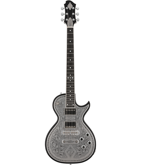 ウェストのくびれが大きいシングル・カッタウェイのボディー・スタイルで、ボディーとネックに厳選されたアフリカン・マホガニー、フィンガーボードはエボニーを使用、635mmのスケールで、セット・ネック・ジョイント、ミディアム・サイズの24フレット仕様で、ブリッジ後方に「Diamond & Z」のデザインを採り入れたモデルです。