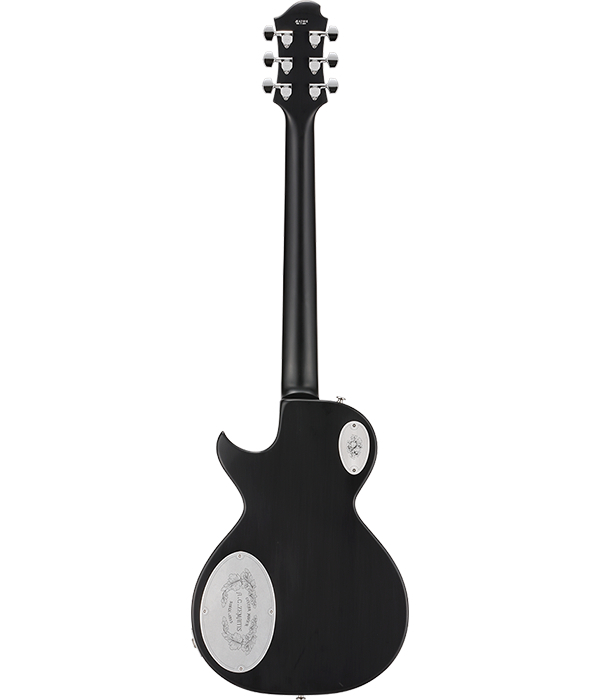 「ヘッドに取り付けているダイアモンド・エンブレムを、メタル・ピックガードのデザインに採り入れてみてはどうか?」という発想が元になり、生まれたデザインです。