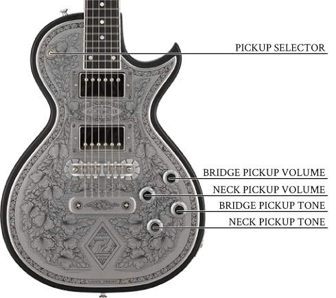 ピックアップは、メタル・カバード・タイプのDragon Classicハムバッカーを2基搭載、コントロールは定評のあるCTSポットを使用し、各ピックアップ・ヴォリュームと各ピックアップ・トーンのレイアウトです。